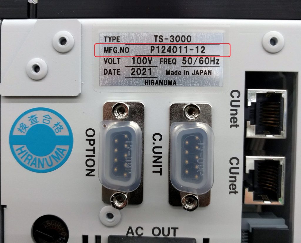 (MFG.Noは銀色の銘版シールに印字してあります)