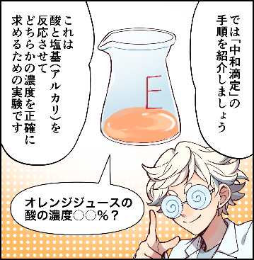 身近な飲料を題材に、滴定の基本的な考え方や測定プロセスをマンガ形式で分かりやすく解説しています。